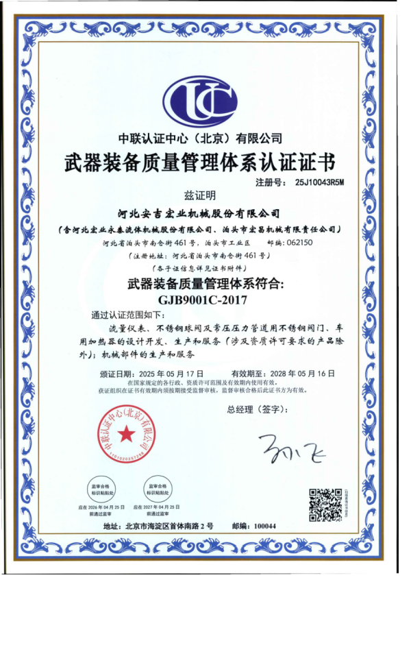 河北宏業永泰流體機械股份有限公司(原泊頭儀表總廠),生產流量儀表產品有三十多年的歷史。參加了節流裝置國家標準GB/T2624-1981的起草工作。公司占地12萬平方米,注冊資金3500萬元。主要產品有節流裝置、儀器儀表、各類不銹鋼閥門、各種化工離心泵。公司取得了ISO9001:2015質量體系認證、挪威船級社CE認證、出口產品Emark認證、特種設備制造許可證等。同時河北宏業永泰還是中石化物資供應商網絡成員,取得了中石油、中海油物資供應商準入證,是中國神華集團、華電集團、大唐集團、中廣核等公司合格供應商。產品出口日本、阿爾及利亞等國家。